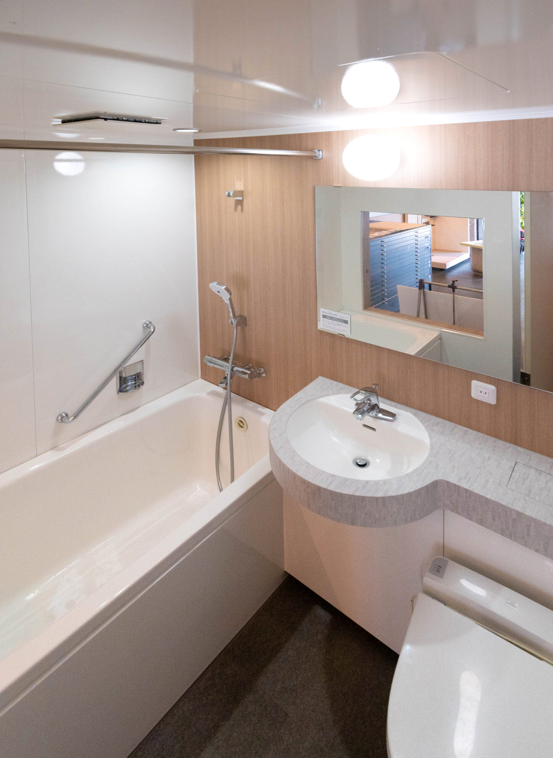 ショールームでは、実際のエコバスリフォームの仕上がりを体感したり、実際に手に取ってご確認いただける様々な展示をご用意しています。