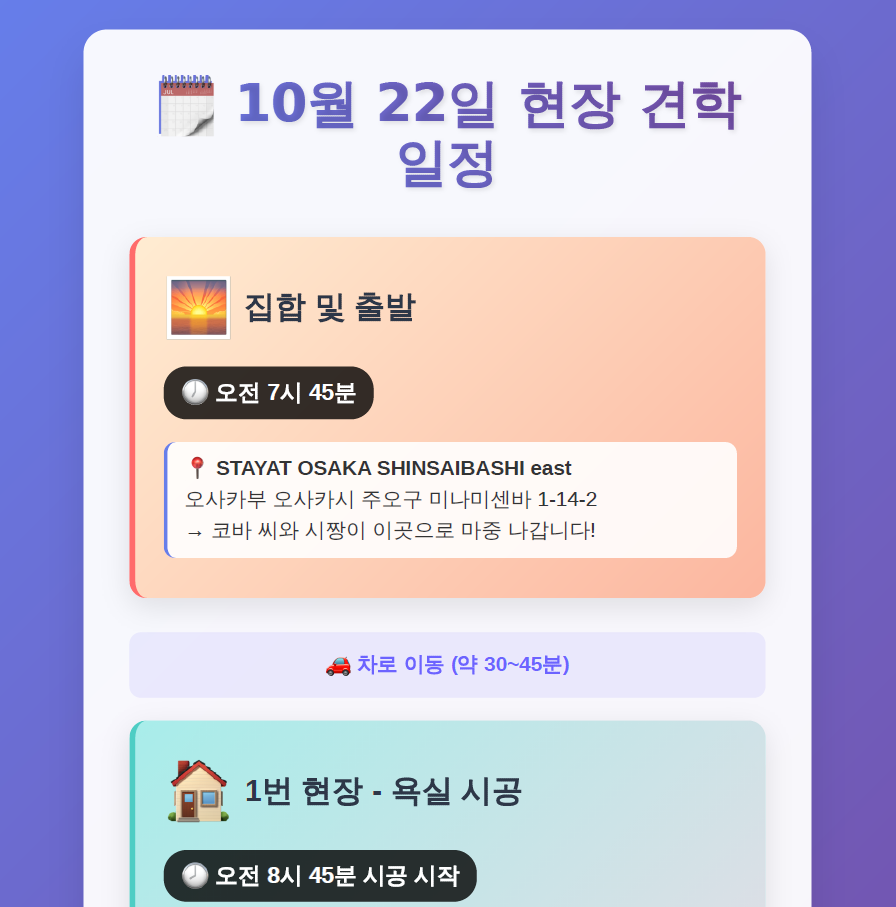 ジホさん(男性)とヨンちゃん(女性)の2名で来られるとのことで、こばさんと打ち合わせして当日のスケジュールを韓国語で作りました。