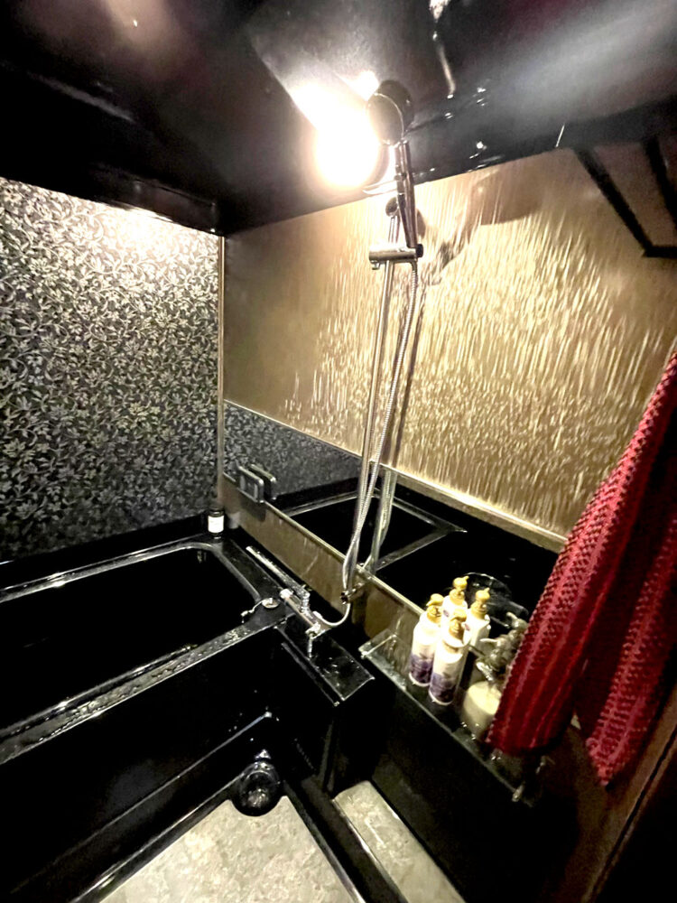 浴室の天井と浴槽にはパールが散りばめられた塗装工事をして、高級感のある仕上がりに!!