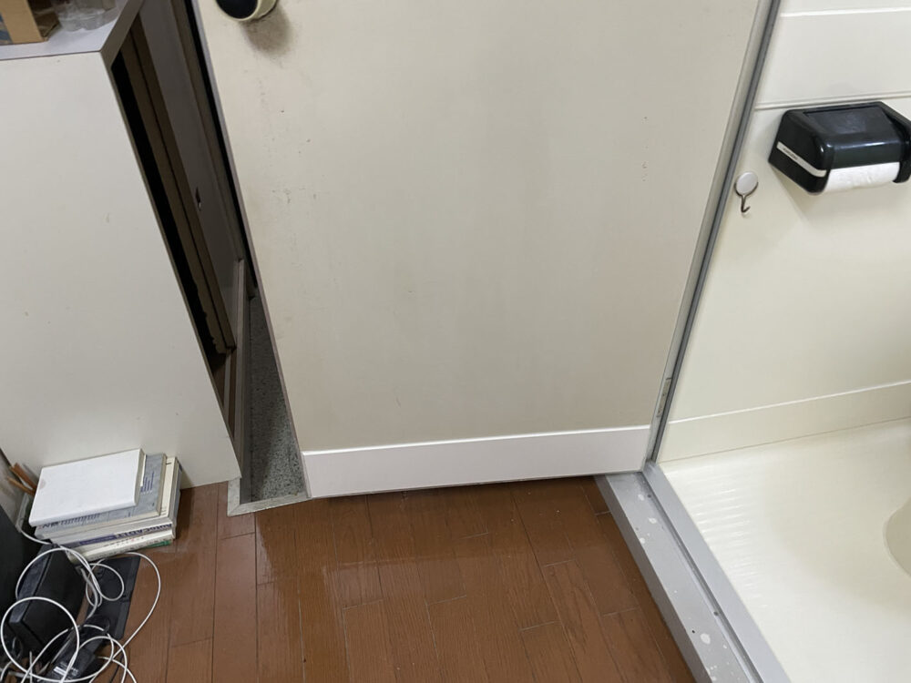 浴室の壁だけでなく、ドアにもサビが出てしまってかなり膨れ上がってしまっています。