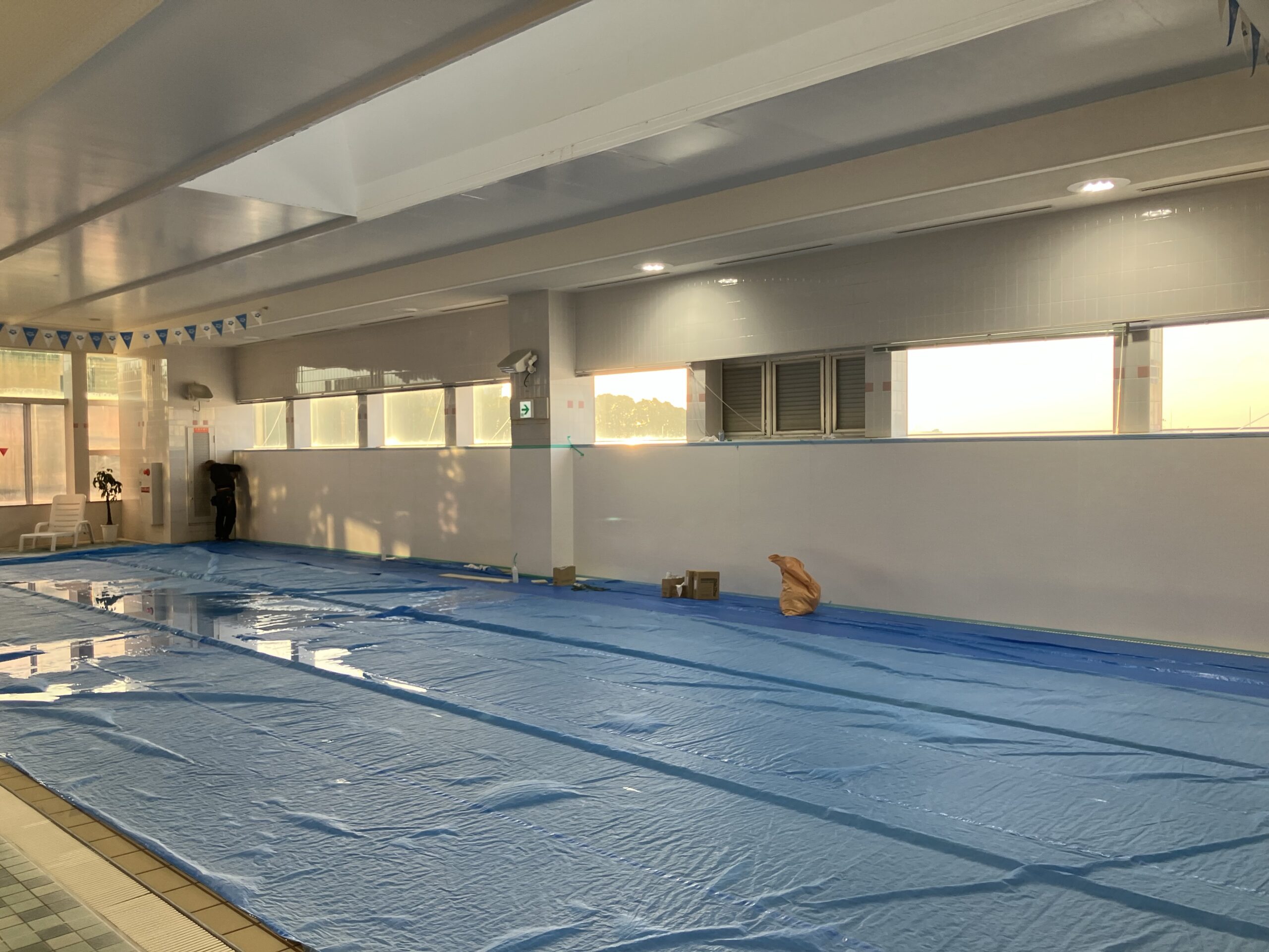 10月の施工だったので気を抜いていて空調服を持って来ず、温水プールだったので、プールサイドでも汗がダラダラの灼熱でした。