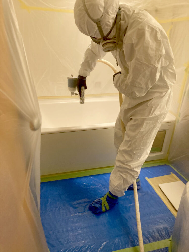 加工した後、浴槽全体に吹付塗装を行い仕上げます。