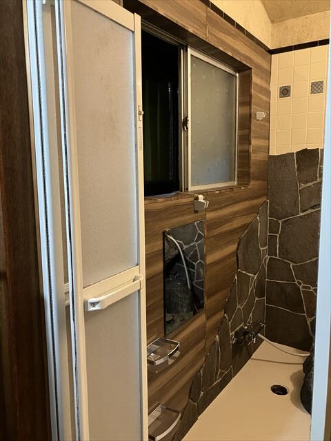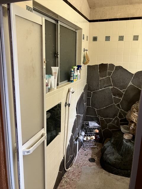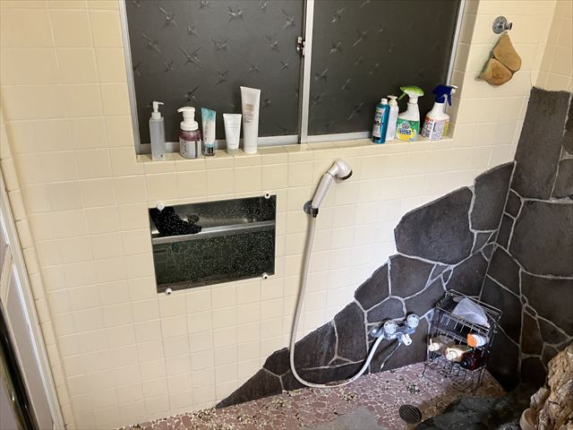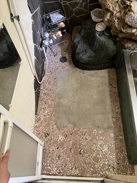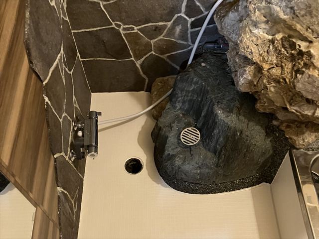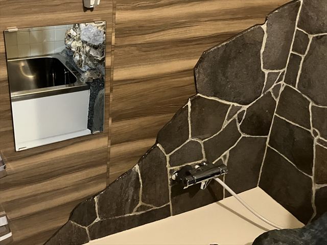 今回ご紹介させていただくのは、浴室内に岩がある現場です。