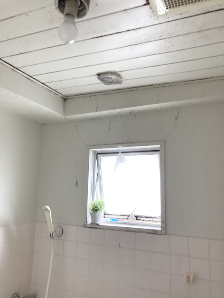 在来浴室で天井や壁の目地には高温多湿のこの時期に大繁殖するカビが目立ちます。