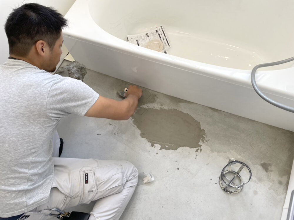 床も段差をなくし高齢の方でも安心できる浴室に仕上げていきます。